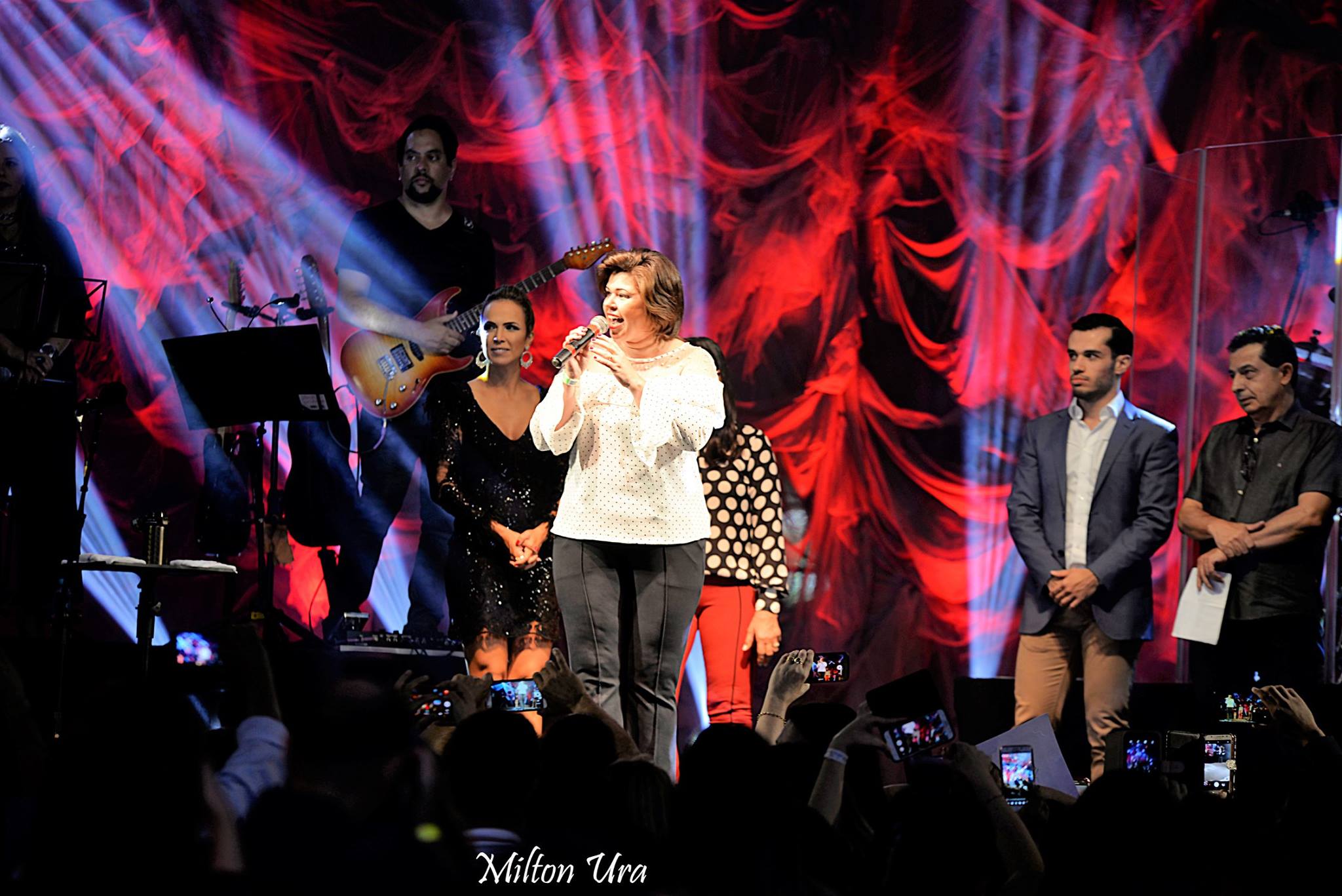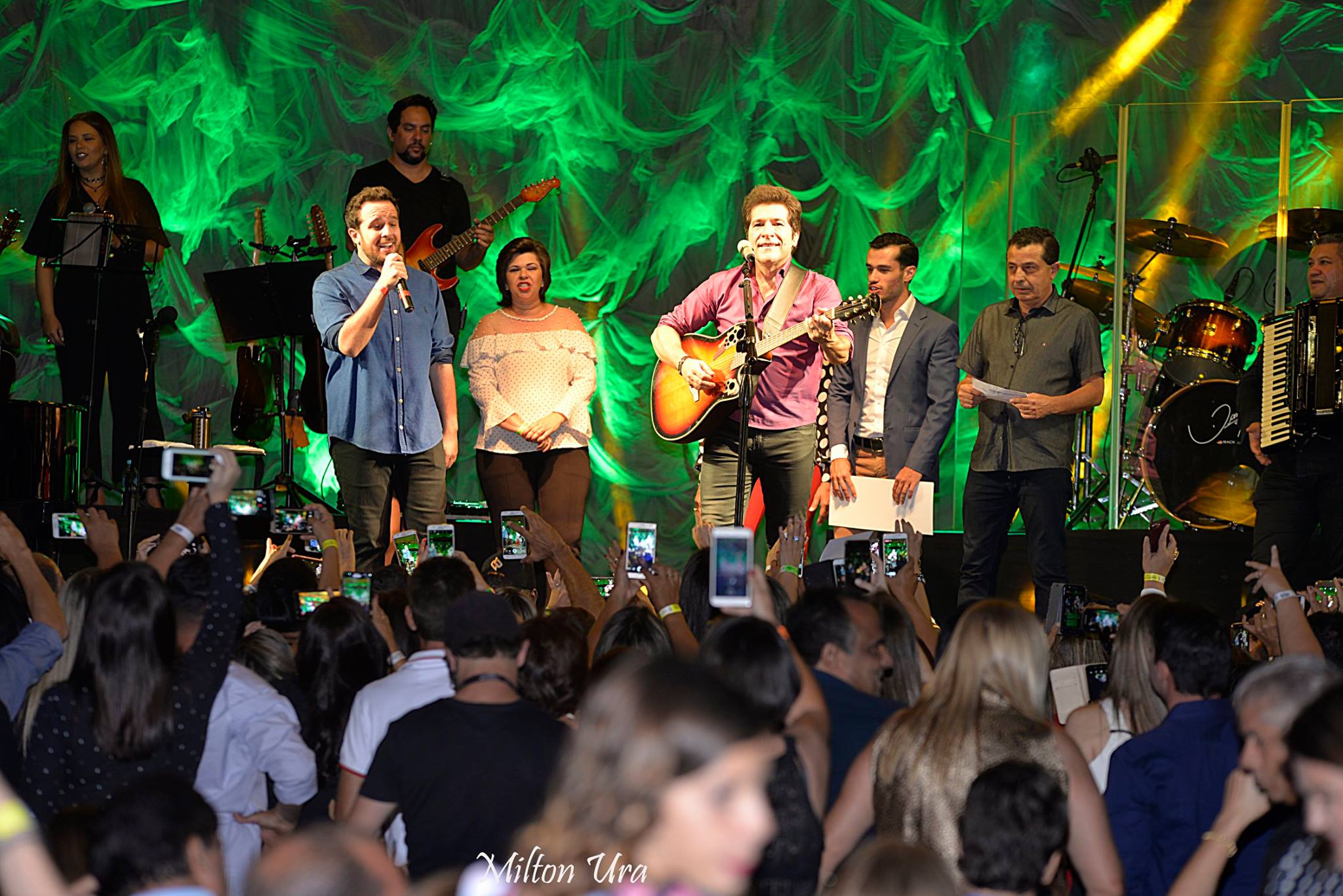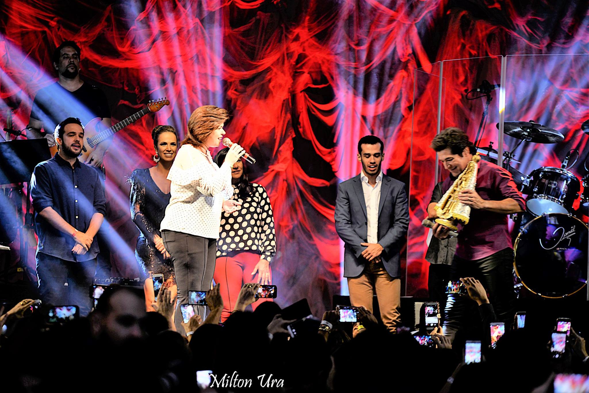 A cantora adamantinense Cássia Medina Bosso também subiu ao palco. Fez um solo, cantando “Ave Maria”, e depois foi chamada pelo próprio Daniel para fazer um dueto com ele. Juntos, cantaram “Romaria”, clássico da música popular, composto por Renato Teixeira.